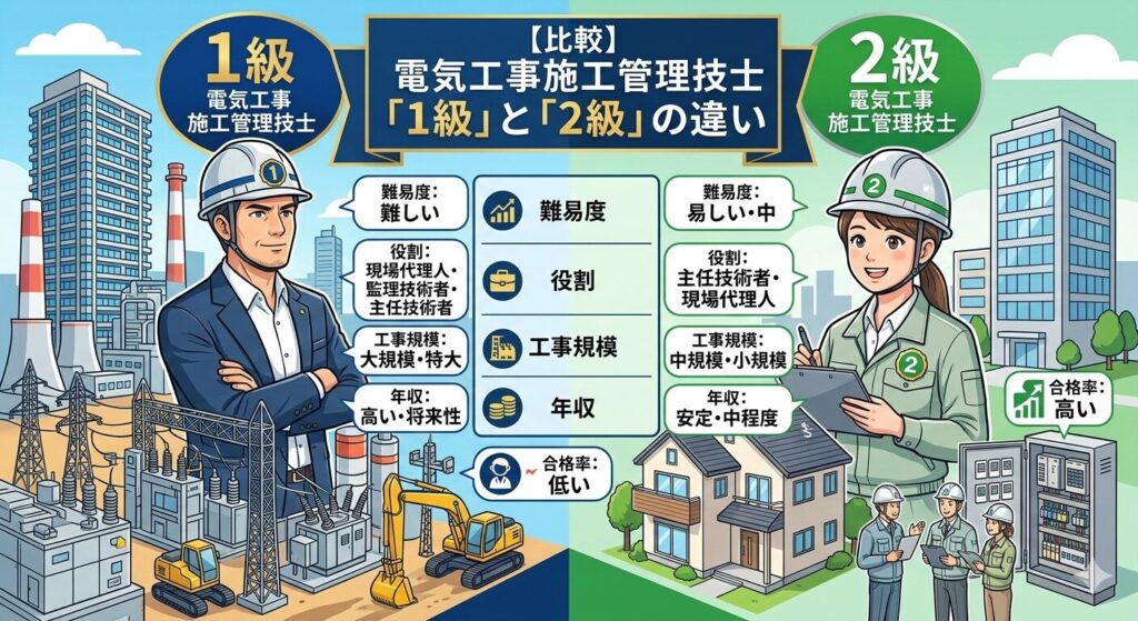 【比較】電気工事施工管理技士「1級」と「2級」の違い