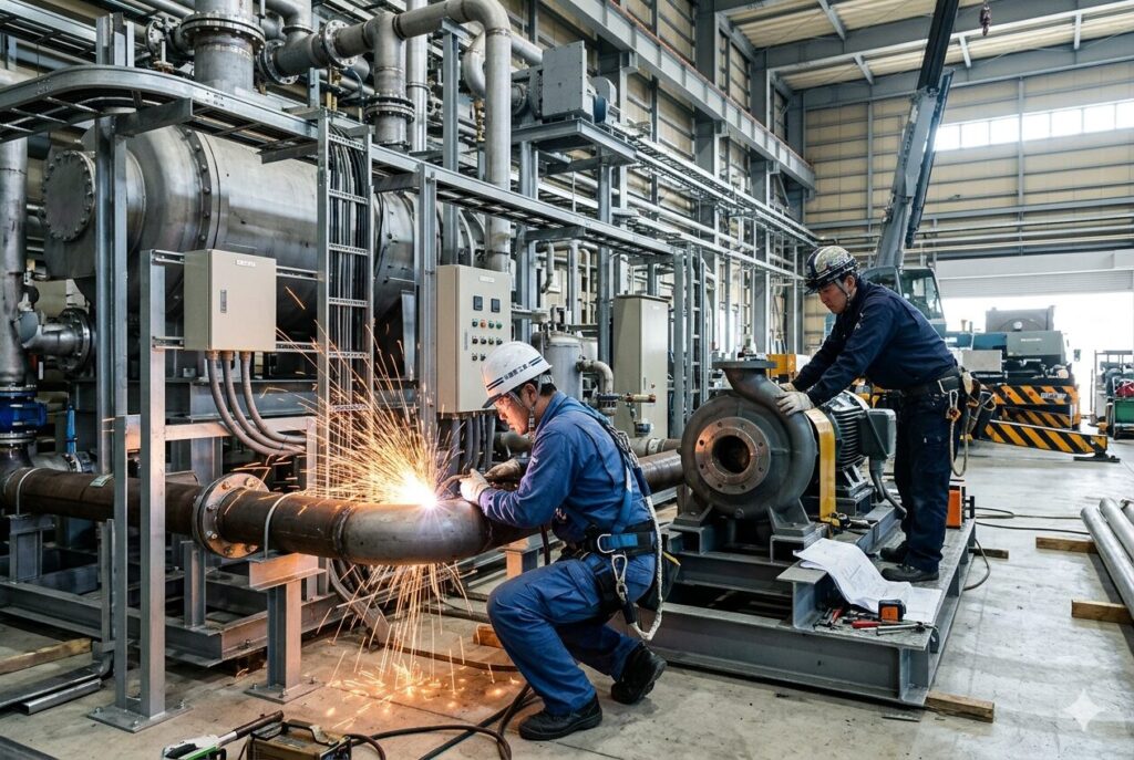 図面を読み解き、仲間と声を掛け合いながら巨大な設備を自らの手で組み上げていく圧倒的な醍醐味があり、工場の稼働と地域の産業を最前線で作り上げているという誇り高きお仕事です。