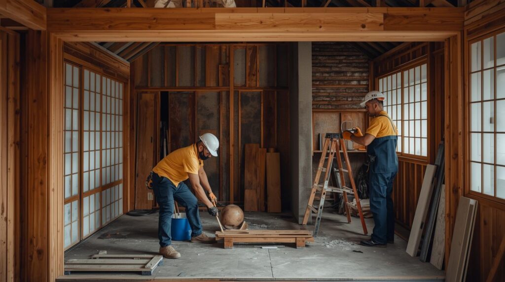 着工前の入念な構造調査から、大工や左官職人の手配、複雑な納まりの現場指示、安全・品質管理をトータルで担当します。