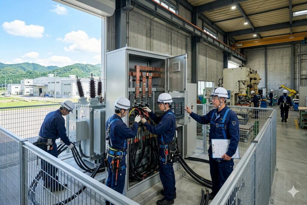 製造業が盛んな地域において、巨大な工場の心臓部となる受変電設備を構築し、生産ラインに安定した電力を供給して命を吹き込む、非常にスケールの大きな電気工事です。