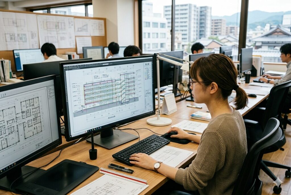 京都市内で進行している大型オフィスビルや商業施設の建設プロジェクトにおいて、現場の施工管理技士を技術面でサポートするCADオペレーター業務をお任せします。設計事務所の意匠図や構造図を基に、AutoCADやBIM(Revit等)を使用して、職人が現場で作業するための精緻な「施工図(割付図や詳細納まり図)」を作成・修正します。現場からの急な図面変更の指示にもスピーディーに対応し、工事の円滑な進行を支えます。正確な図面で現場の安全と品質に直結するデスクワークです。